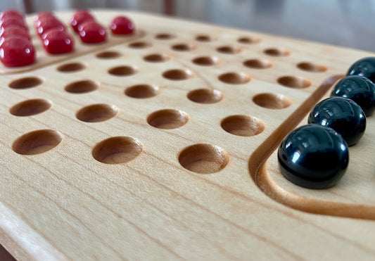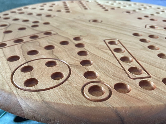 Handmade 6-Player Wahoo / Aggravation Game Board – Natural Hardwood Circle Board with Marbles & Dice